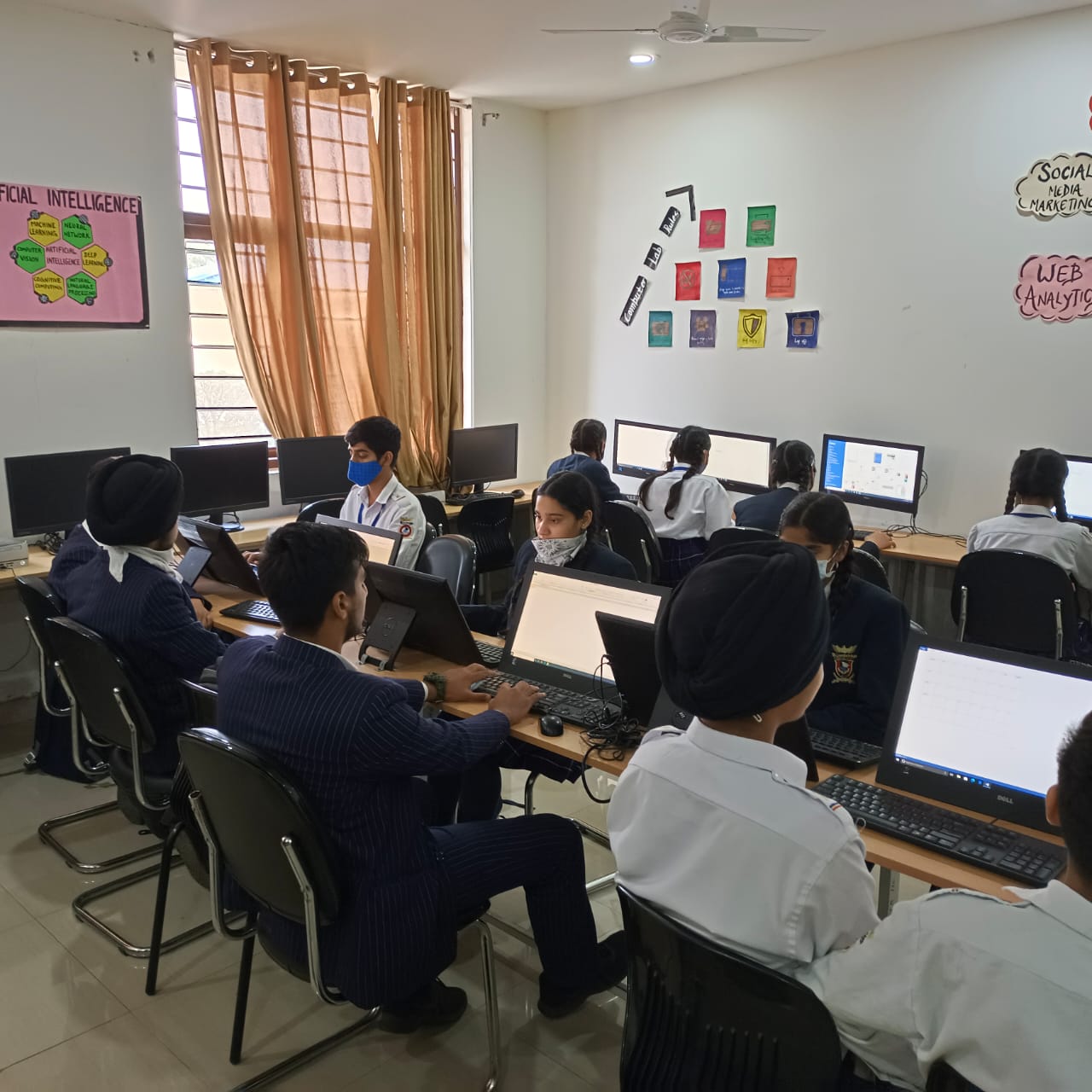 The School has well-quipped computer labs to urge the students into the foray of advanced Computer skills. All the computers are equipped with updated software's and advanced technical aids to learn programming, web designing, and app –development to have critical and analytical skills. The highly qualified teachers bring about new confidence in the Students by making them aware of using technology. Computer teaching is used as an integral part of the teaching learning process.